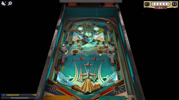 We’ve already reviewed the AtGames Legend build of Aerobatics Retro. The updated Steam build benefits from having a variety of physics options (not to mention tables like this were meant to be played with five balls, not three. Someone please get that memo to MagicPixel and AtGames). Also, we all seem to agree that the saucers don’t seem to dump the ball between the flippers as often. Actually, the right saucer never did it once. Oh, the left saucer still did it enough to Angela that she’s still dumping it in THE PITS. (Dave to Angela: “wait a second, aren’t you the one who defends Jack*Bot?”) Actually, it was pretty funny. In four separate first-to-three duels, Angela only won a single game the entire time, but that one game she won, she set the world record for Aerobatics Retro on 5 Ball Arcade. She basically did it the same way Matt got #2 in 3 Ball Arcade, IE the ball fell into the saucers. So they fell ass-backwards into records. The lack of shooting angles and nearly impossible to defend-against slingshots still shoot down this plane, though Oscar and Jordi felt that there’s SOME satisfaction to be had in the chaotic rebounding. “I think three jet shapes and a slightly wider lane on each side to get back to the top would have been a better layout” said Matt. Hard to disagree. Set: Zaccaria – 40 Retro Tables