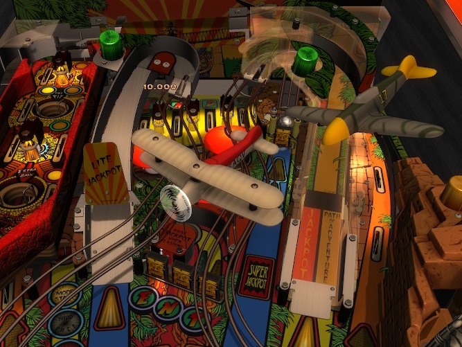 Then there is the left outlane. This is a wide body so you’d think balls wouldn’t go there all the time. But, once a gall goes for the left side you have to slam the nudge upwards or lose yet another ball. This is also a table where the Zen visual enhancements aren’t as well thought out. On some camera views, the Indiana puppet will obscure the ball as he swings about, and the air-fights that fly around in the dogfight will do as well. If you’re serious about playing a good round, turn those off! Overall, the difficulty in this table does not come from its modes, but from what I can only consider design flaws. The left outlane is badly designed and there should be a pin between the flippers to prevent cheap STDMs. This table could have been amazing but as it is, I am left wondering if the modes were made as easy as they are because the designers knew the cheap ball losses had to be compensated for.