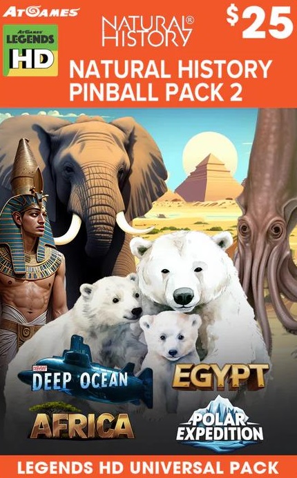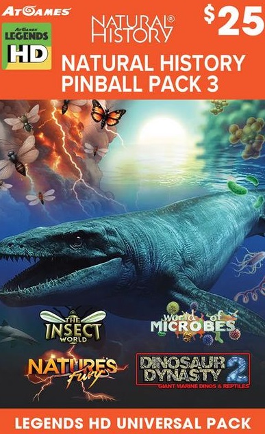 Huge thanks to Sasha the Kid, all of 9 years old, who actually wrote a lot of this. She is heir-apparent to Indie Gamer Chick and The Pinball Chick and a very talented pinballer who set her first world record at the ripe age of 8 (she was briefly Exploding Kittens world champion for Pinball FX and since then has claimed a few other records that held on longer). Sasha got the AtLegends Micro for Christmas in 2023 and she’s been putting more time into it than we have our other AtGames pins. She’s worked very hard with all of us to put this together. Like all Pinball Chick reviews, this is the product of my whole pinball-playing family debating the merits of these pins. With that said, each Natural History pack costs $25 and comes with four tables. Presented to you here are quick reviews of all twelve tables in that series so far, along with general thoughts on the Natural History franchise. Enjoy!
